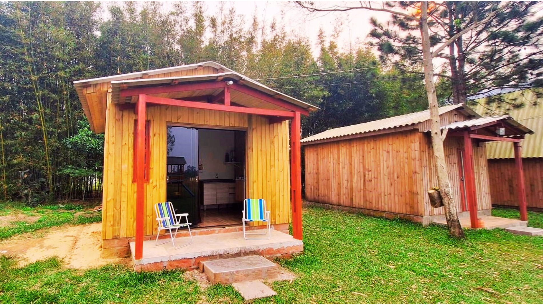 Cercada de área verde para que você possa se desconectar da rotina da cidade. Ambiente aconchegante típico campestre, sua composição único e integrado, com quarto, sala, cozinha junto (estilo kitnet) e banheiro completo com box de vidro.